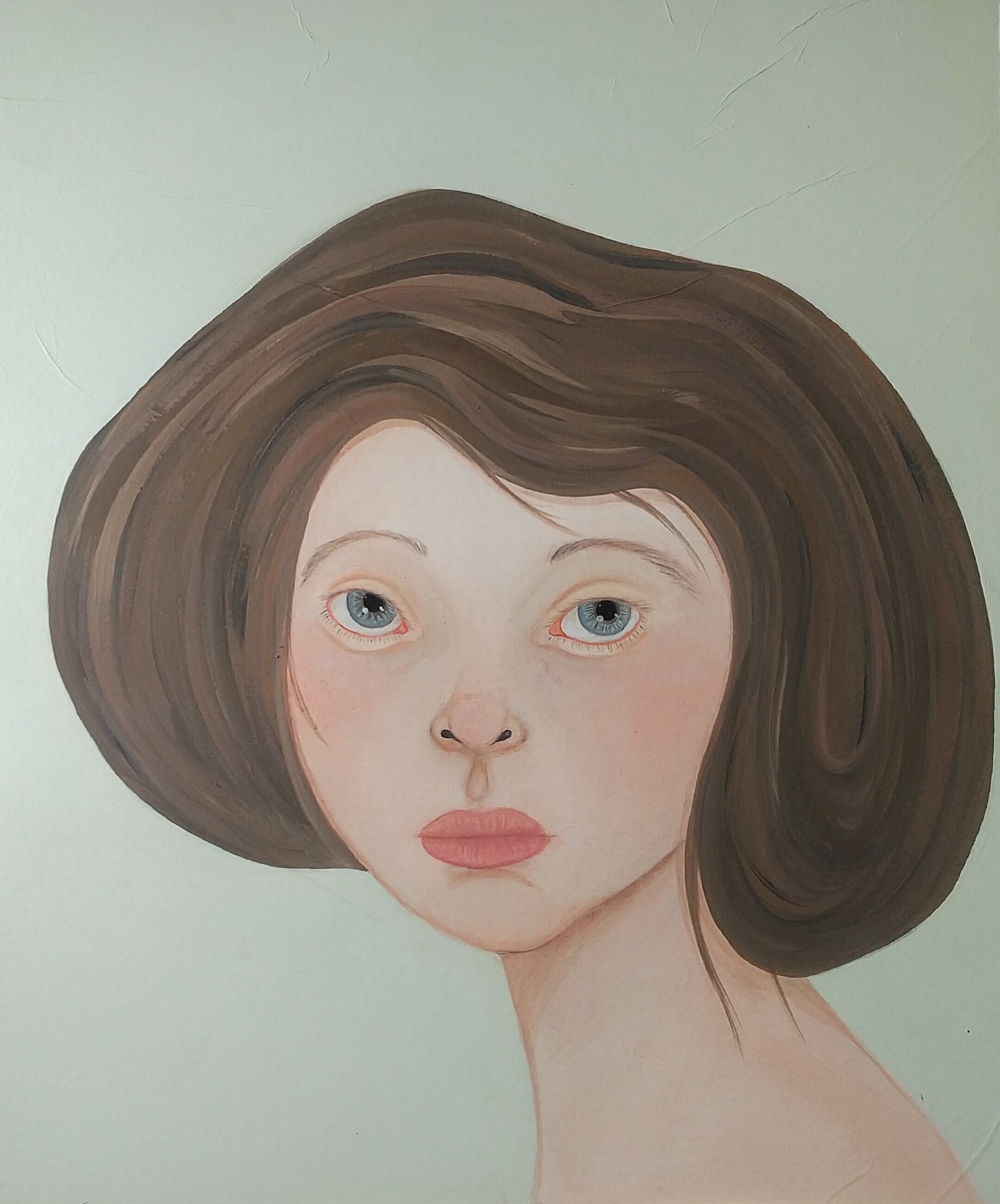 寝起きの彼女は、ベッドにちょこんと座ったまま、少し悲しそうで、少し怒っているようで、